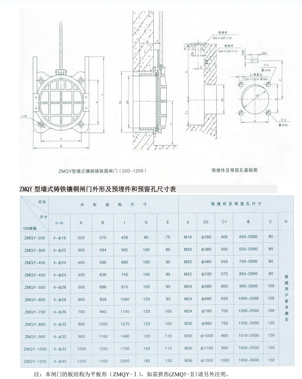 ZMQY型墻式鑄鐵閘門外形及預(yù)埋件