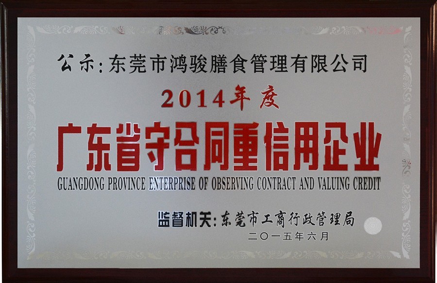 鴻駿膳食獲“守合同重信用企業(yè)”榮譽稱號