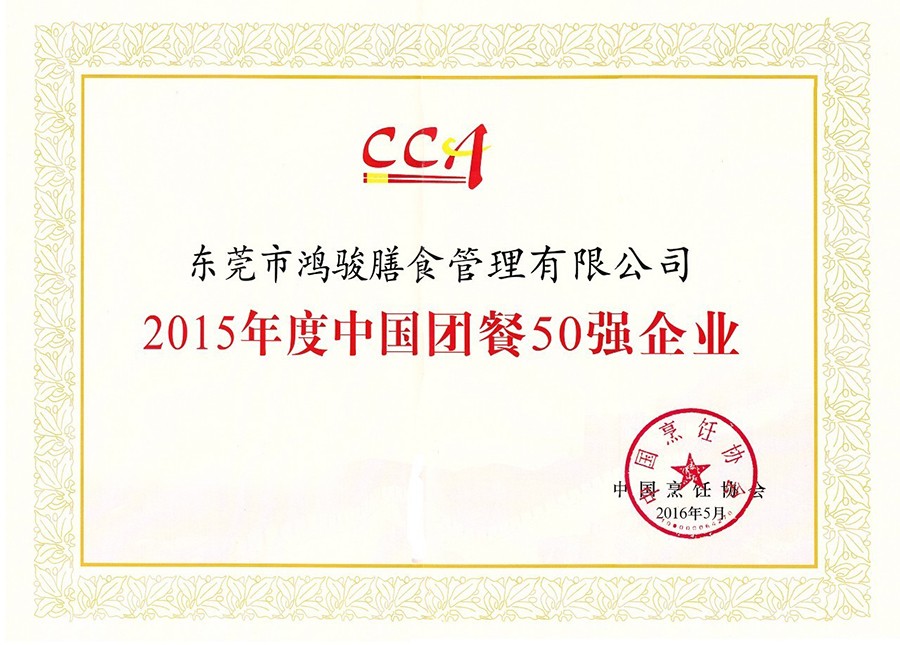 鴻駿膳食榮獲“中國團餐50強”稱號