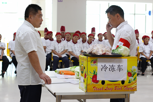一般情況下,如果出現(xiàn)冷凍車故障、食材報廢該怎么辦呢?司機、餐廳負責人、企業(yè)負責人、采購、倉管、檢測員等主要人員模擬出在限時應急處置的狀況。