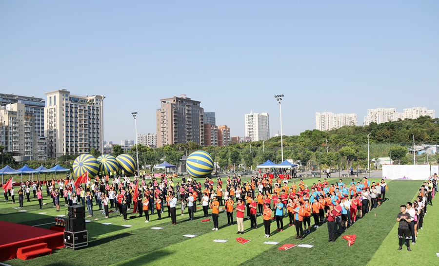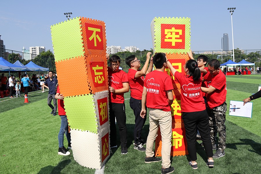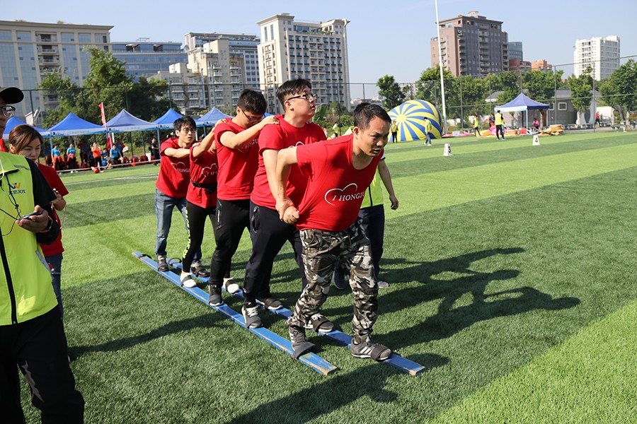 準(zhǔn)備過后比賽就開始了。第一個項目《敢挑重?fù)?dān)》,每個參賽團(tuán)隊派出10名隊員抬起5米直徑的大彩球,在指定場地上繞一圈返回起點,誰先到達(dá)終點誰就贏了,別看氣球不重,但如果隊員之間不協(xié)調(diào)好就很容易撐不住,之前的努力就前功盡棄了。還有同樣有趣的項目等著大家——《重走長征路》,每隊同樣派出10名隊員,其中五人在起點,另外五人在終點,隊員們同穿一副腳板齊步向前,來一場接力賽,這考驗的是團(tuán)隊的合作精神,團(tuán)結(jié)一致聽指揮最終才能獲得勝利。活動上,別開生面的趣味運(yùn)動項目既讓參賽隊員放松了心情,又營造了濃厚的“兩新”黨建氛圍。