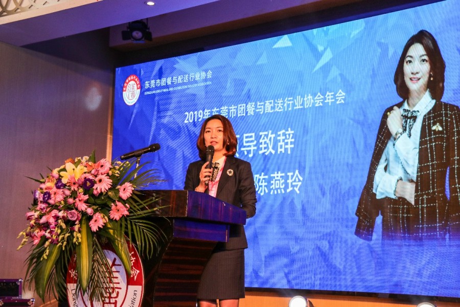 東莞市團(tuán)餐與配送行業(yè)協(xié)會(huì)會(huì)長陳燕玲女生致辭